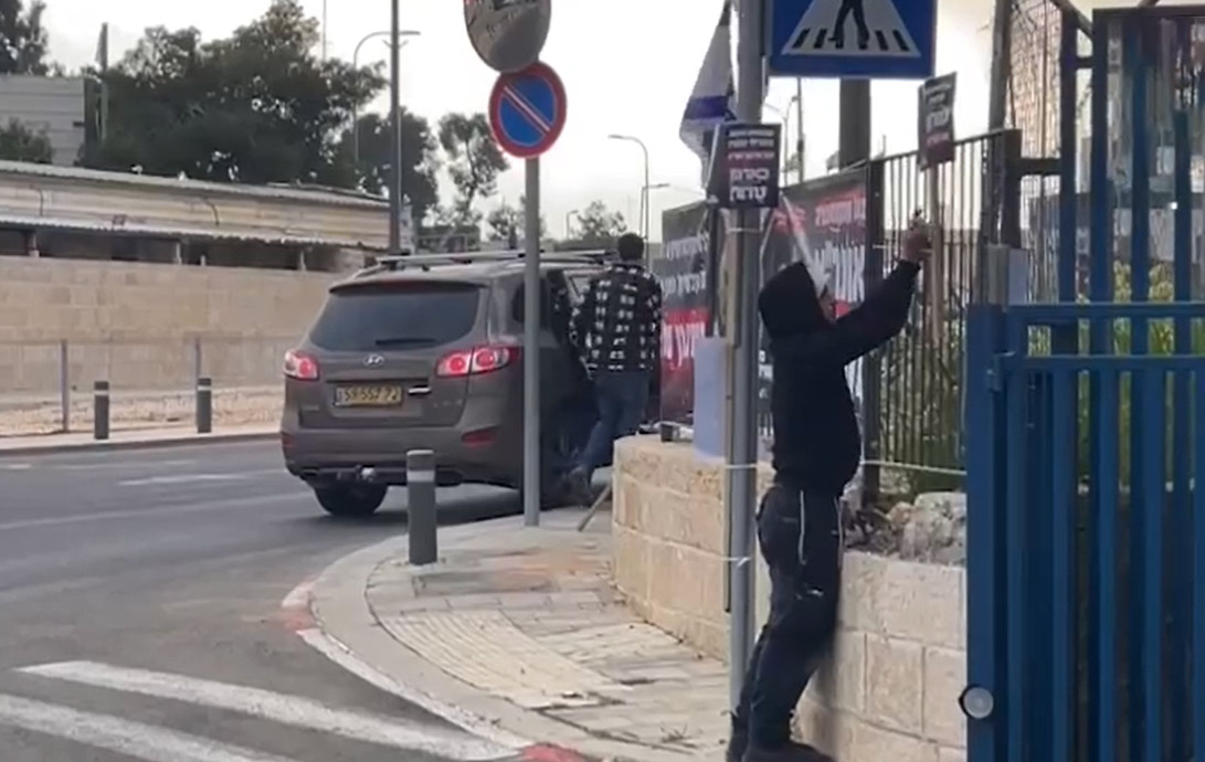 مقطع فيديو قيام مستعمرين بوضع ملصقات على المدخل الرئيسي لمقر الوكالة، تدعو